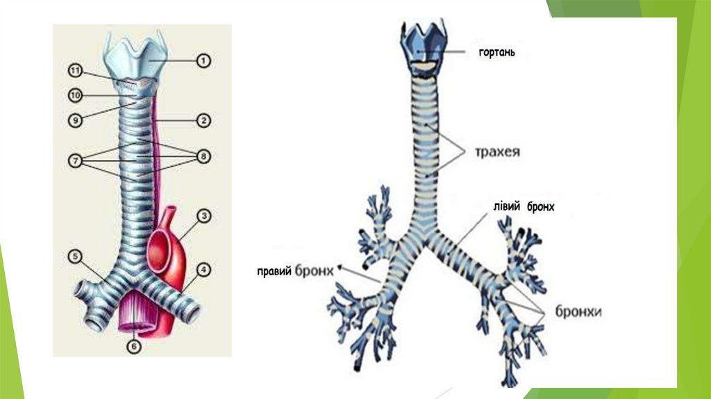 Дихальні шляхи - це система трубок, які мають хрящову основу, а слизова оболонка містить миготливий епітелій.