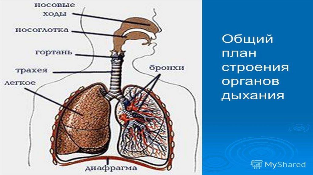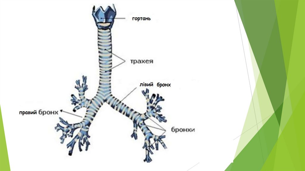 органів дихання належать: носова порожнина, гортань, трахея, бронхи та легені. В дихальній системі виділяють