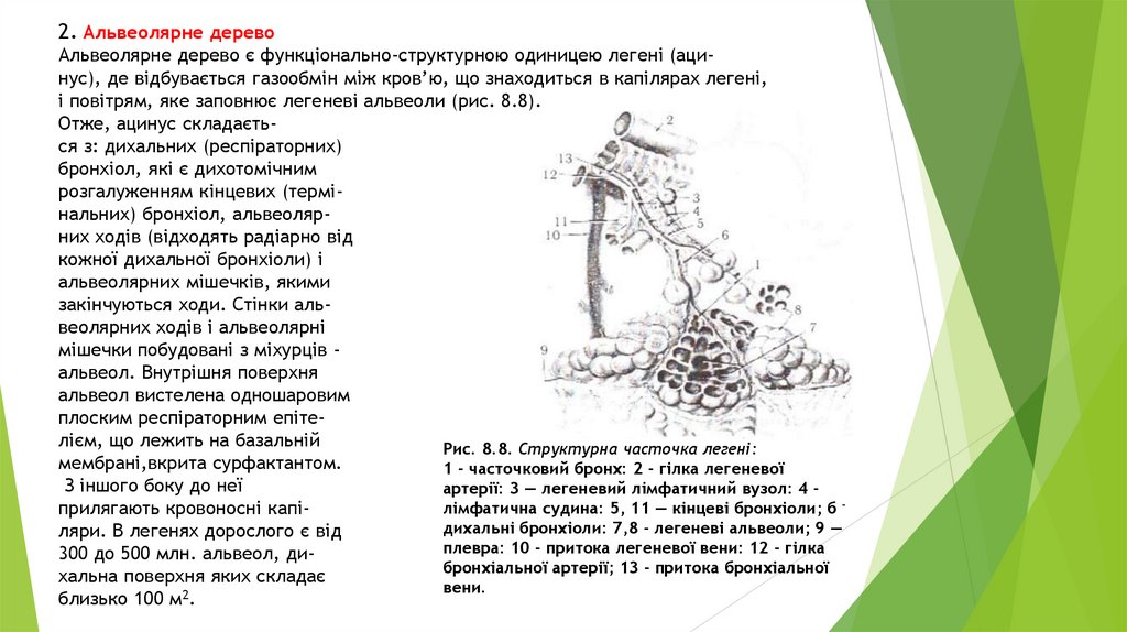 представлена паренхімою легень, в альвеолах легень відбувається газообмін між повітрям і кров’ю.