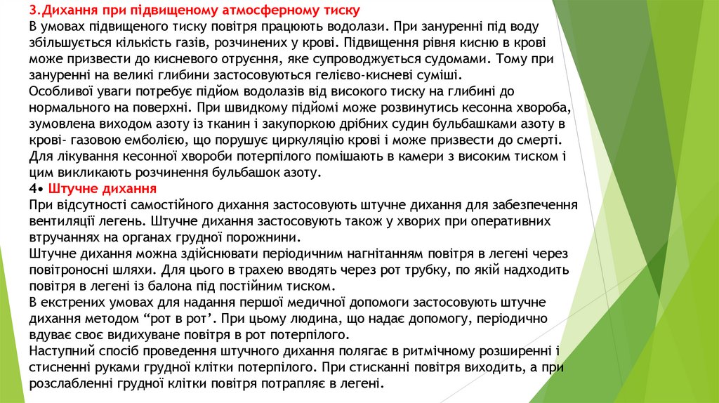 3.Дихання при підвищеному атмосферному тискуВ умовах підвищеного тиску повітря працюють водолази. При зануренні під воду
