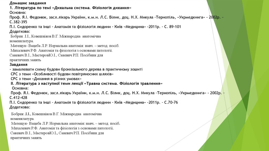 Домашнє завдання1. Література по темі «Дихальна система. Фізіологія дихання»