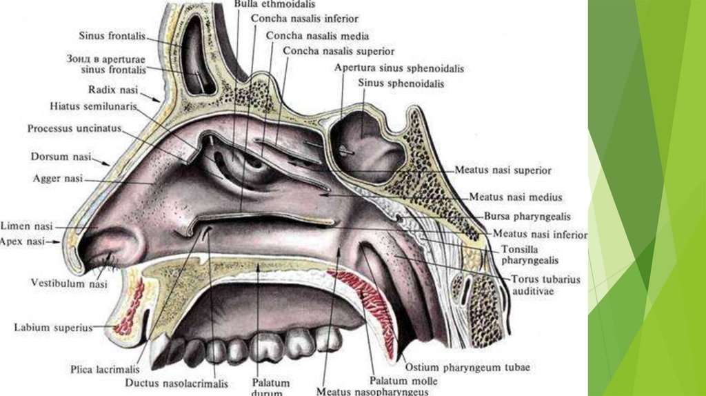 носовому ходу, є нюховою. Тут закладені нервові закінчення нюхового нерва - нюхові