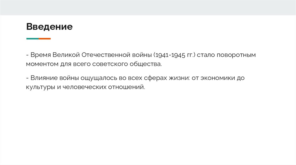 Введение- Время Великой Отечественной войны (1941-1945 гг.) стало поворотным