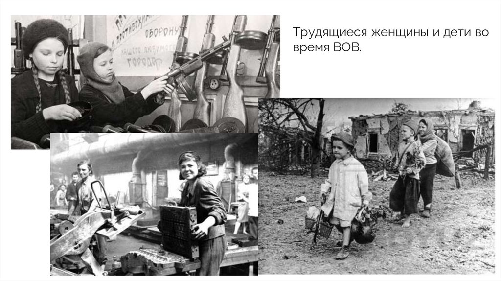 Трудящиеся женщины и дети вовремя ВОВ.