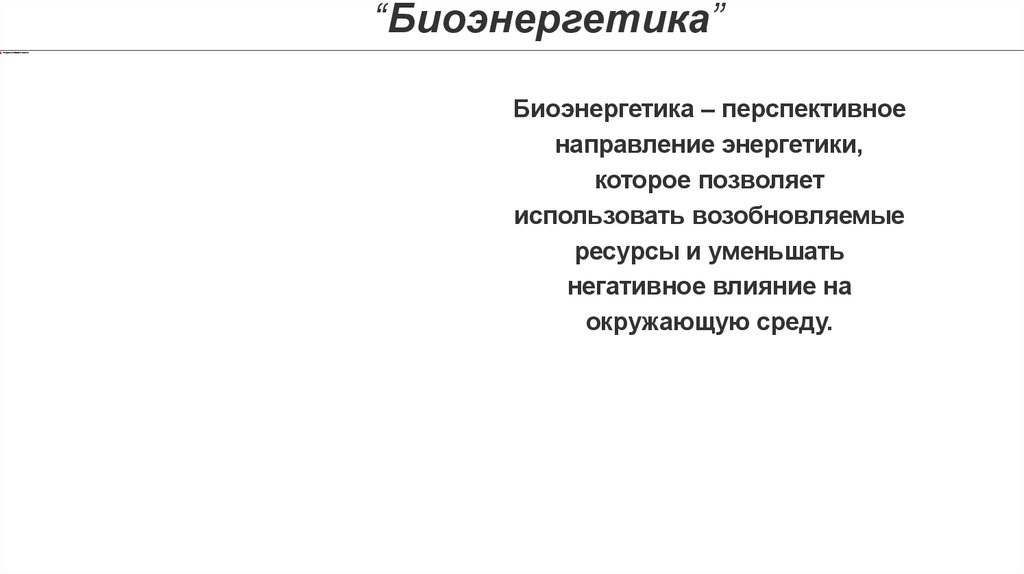 “Биоэнергетика”Биоэнергетика – перспективное
