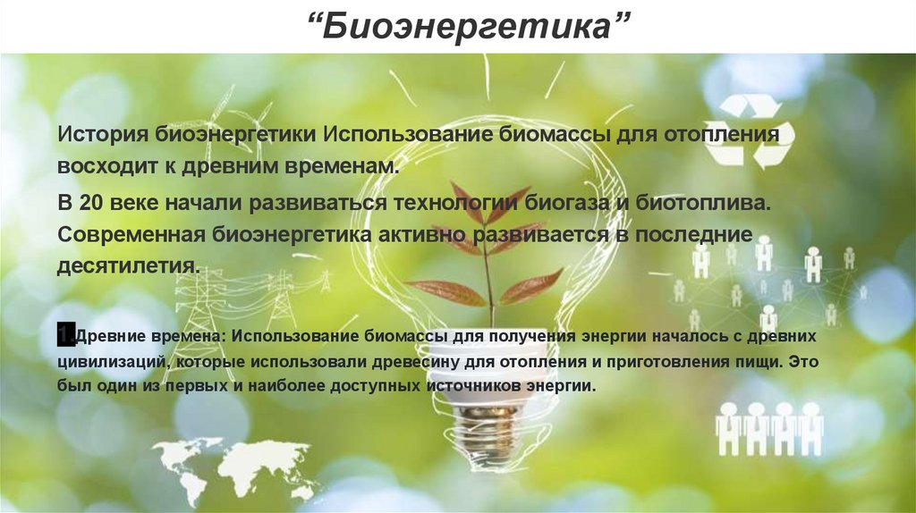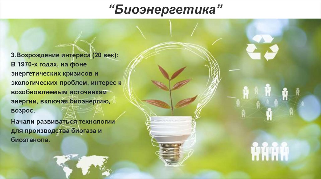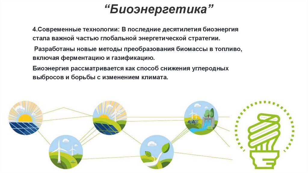 “Биоэнергетика”4.Современные технологии: В последние десятилетия биоэнергия