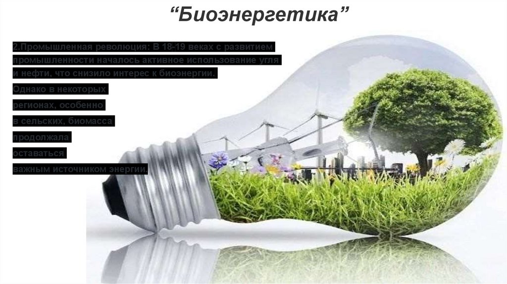 “Биоэнергетика”2.Промышленная революция: В 18-19 веках с развитием