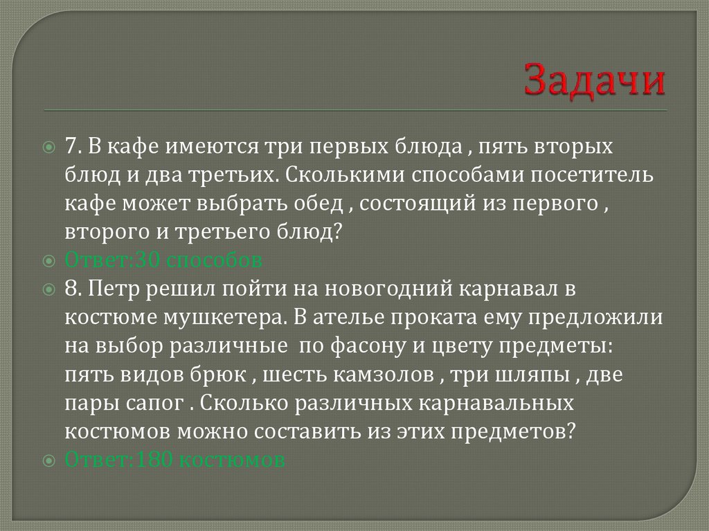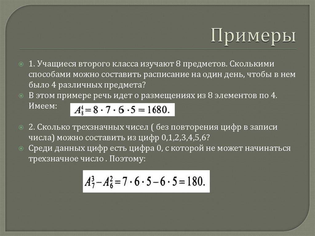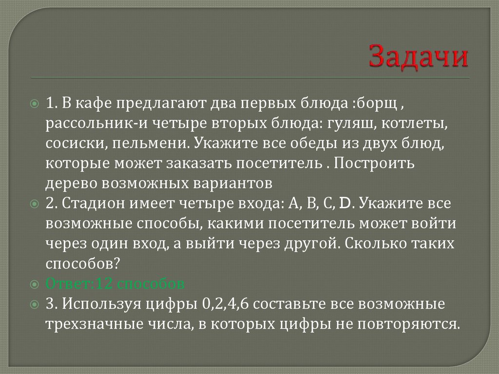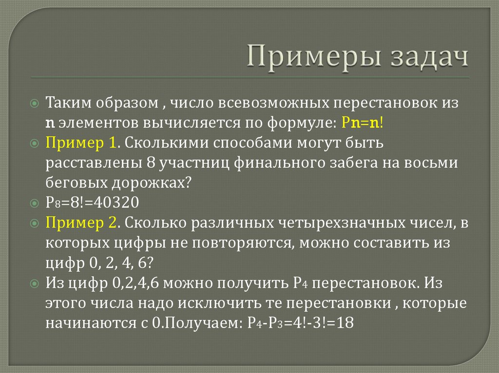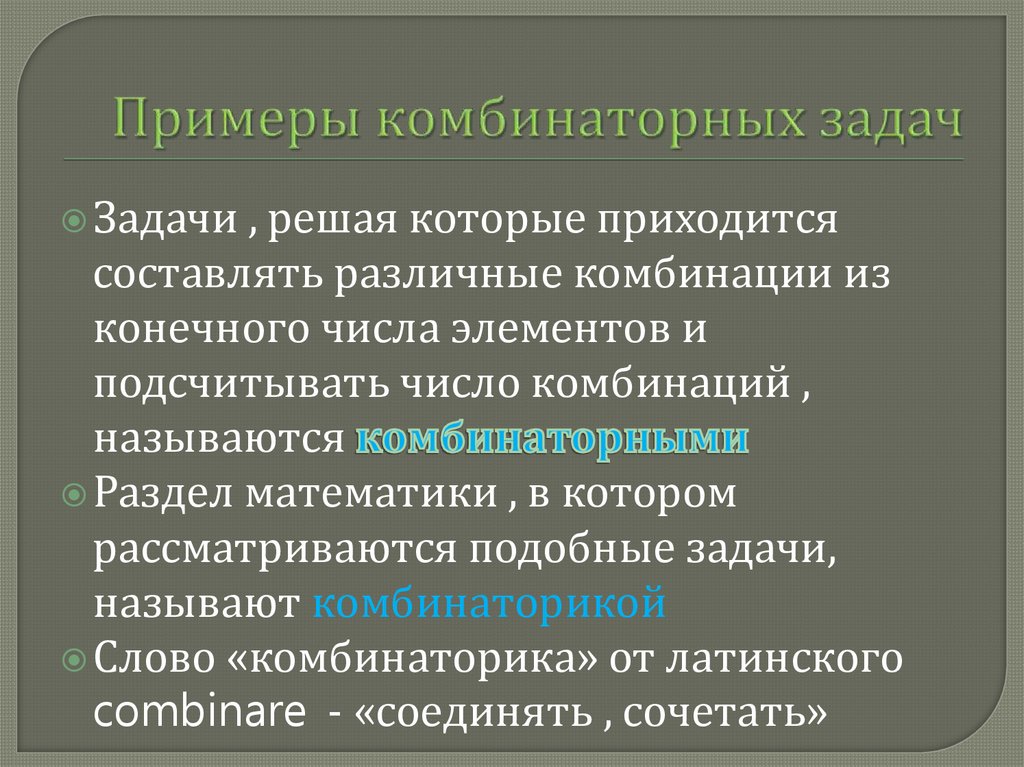 Задачи , решая которые приходитсясоставлять различные комбинации из