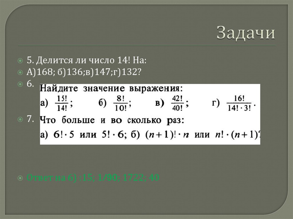 5. Делится ли число 14! На:А)168; б)136;в)147;г)132?