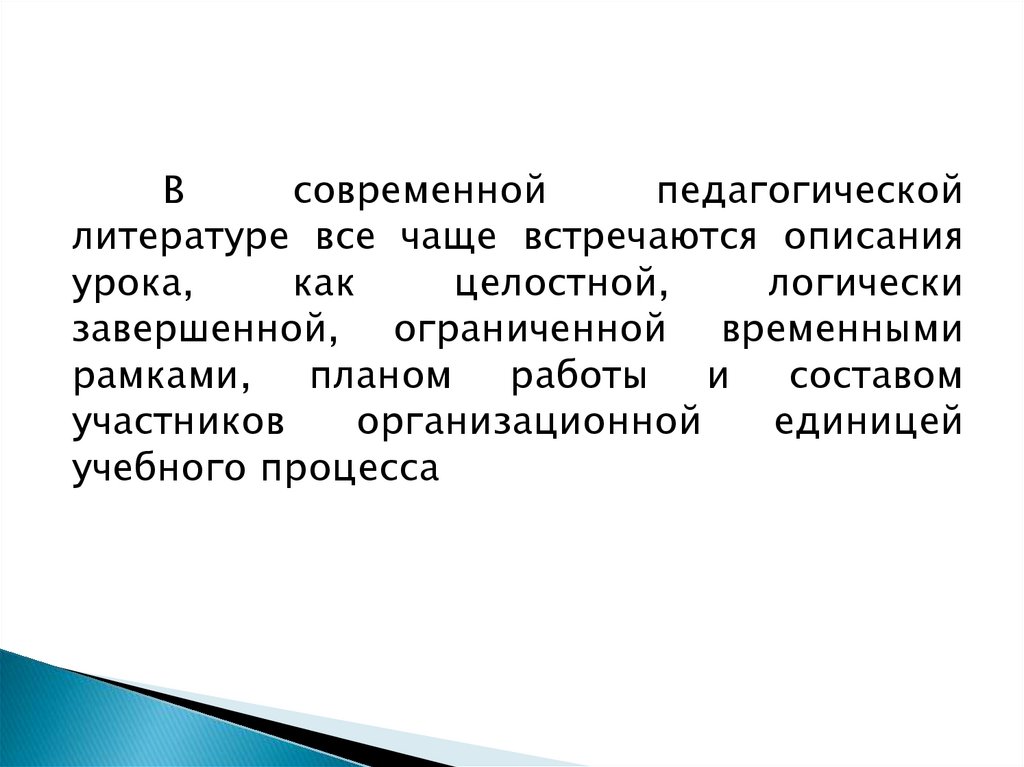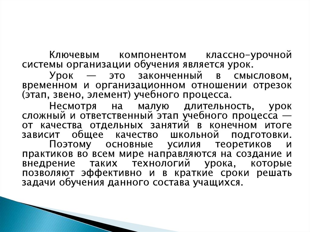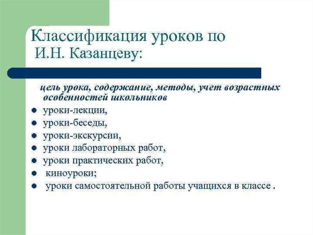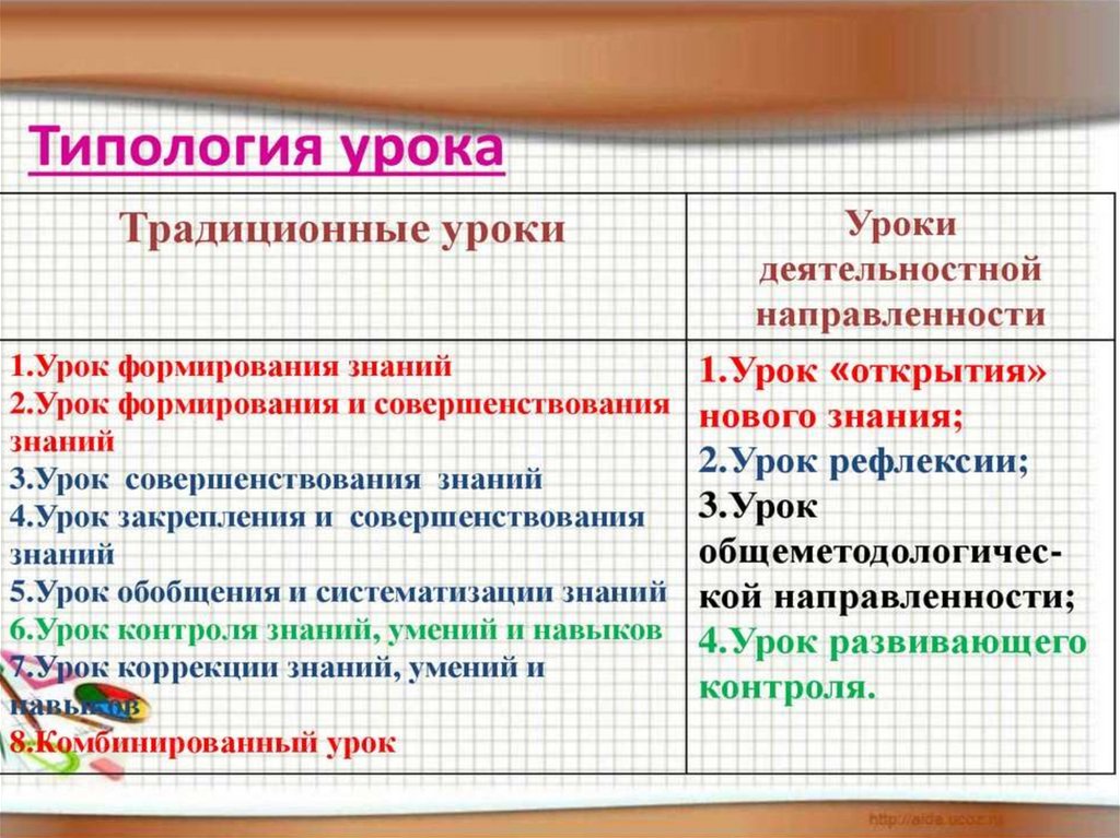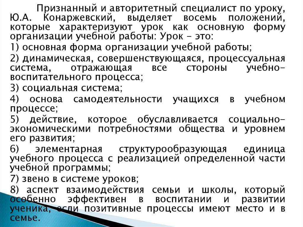 Признанный и авторитетный специалист по уроку,Ю.А. Конаржевский, выделяет восемь положений,