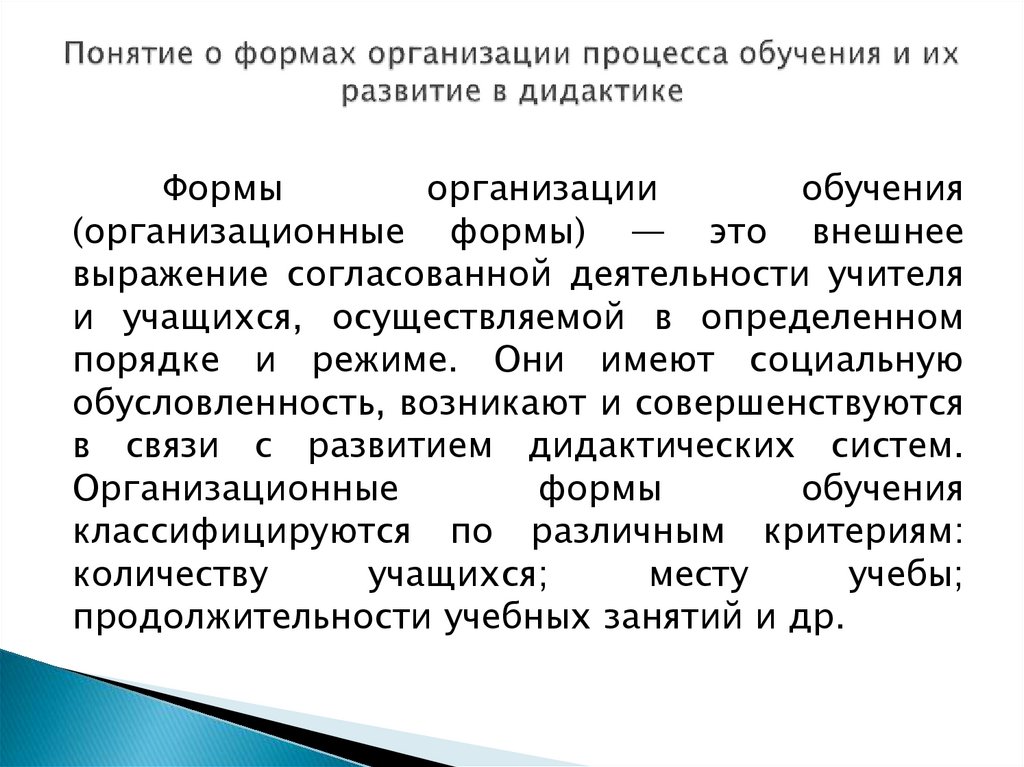 1. Понятие о формах организации процессаобучения и их развитие в дидактике.