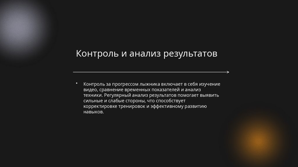 Контроль и анализ результатовКонтроль за прогрессом лыжника включает в себя изучение