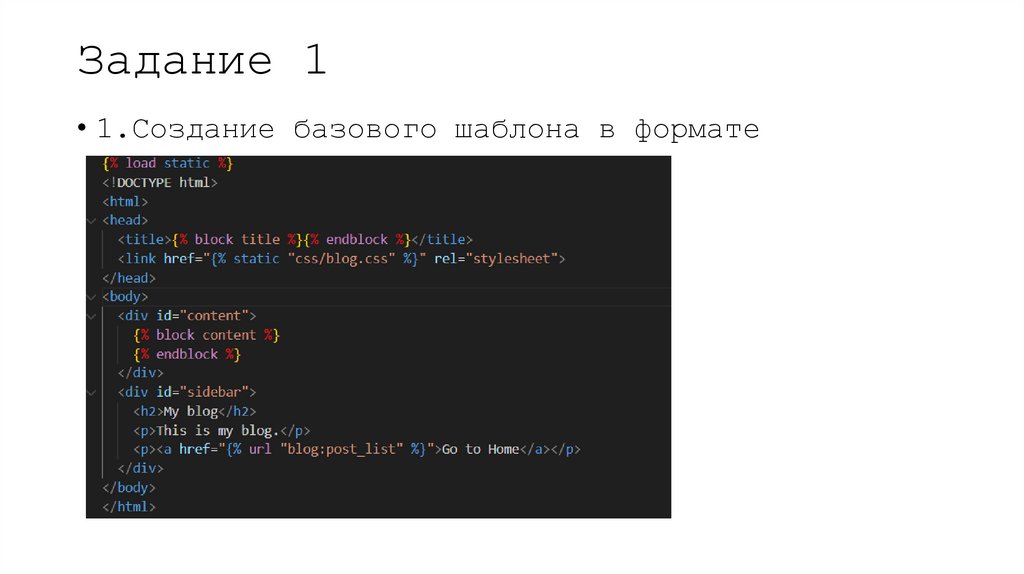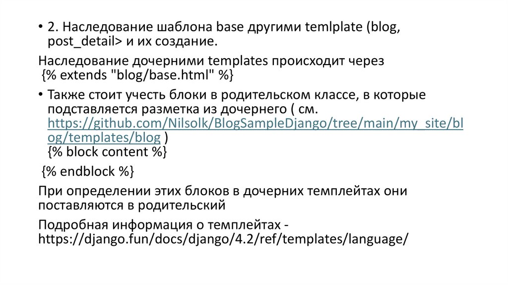 • 2. Наследование шаблона base другими temlplate (blog,post_detail> и их создание.