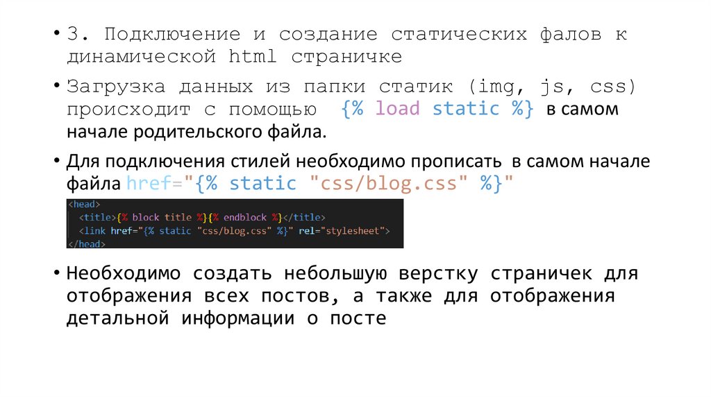 • 3. Подключение и создание статических фалов кдинамической html страничке