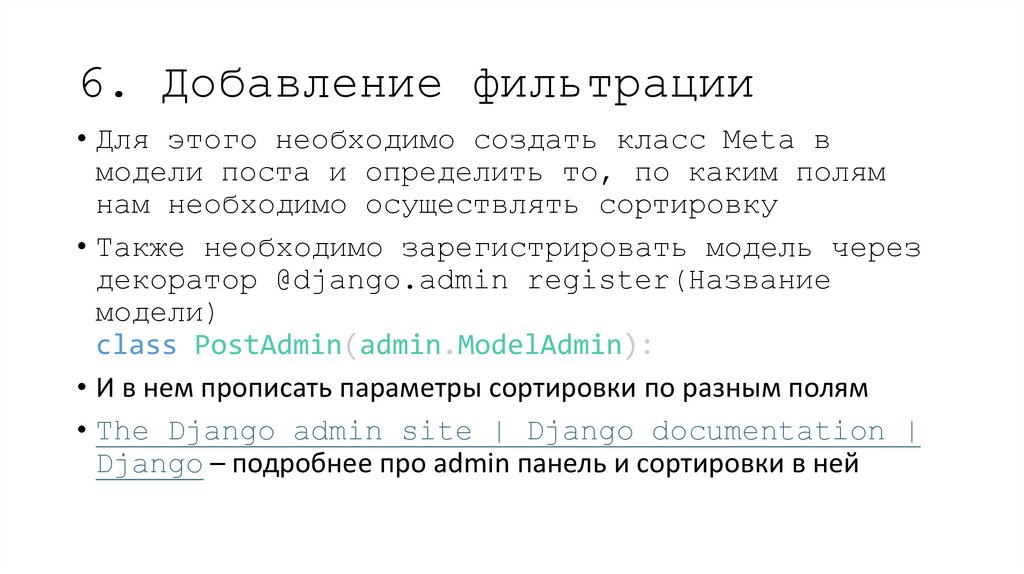 6. Добавление фильтрации• Для этого необходимо создать класс Meta в