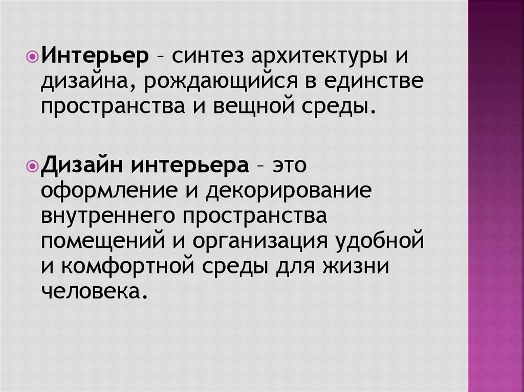Интерьер – синтез архитектуры идизайна, рождающийся в единстве