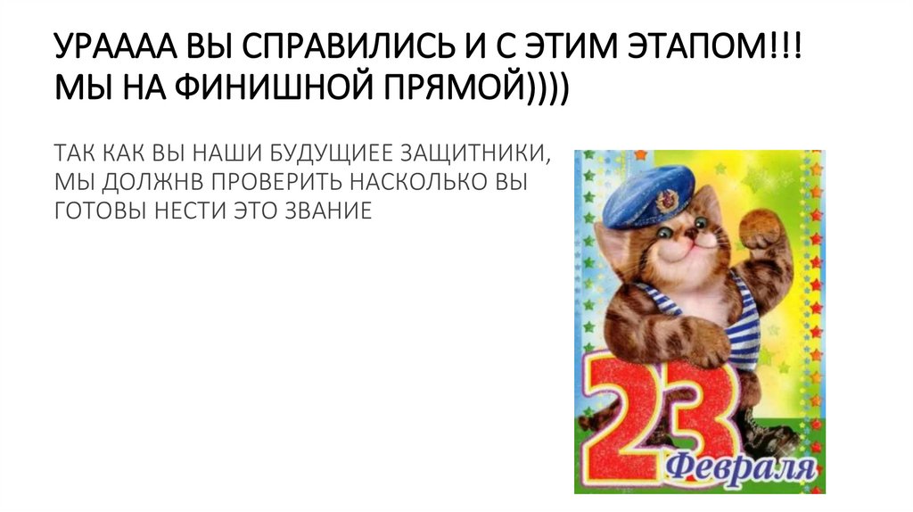 УРАААА ВЫ СПРАВИЛИСЬ И С ЭТИМ ЭТАПОМ!!!МЫ НА ФИНИШНОЙ ПРЯМОЙ))))