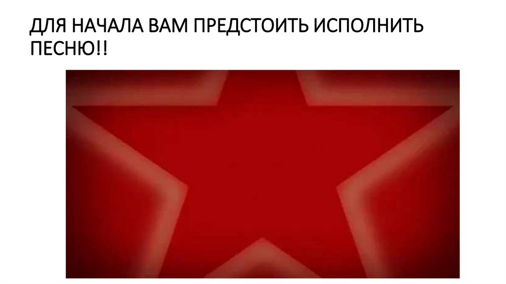ДЛЯ НАЧАЛА ВАМ ПРЕДСТОИТЬ ИСПОЛНИТЬПЕСНЮ!!
