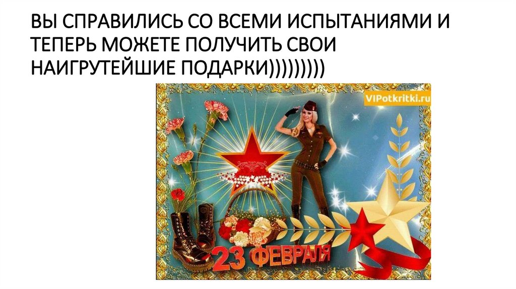 ВЫ СПРАВИЛИСЬ СО ВСЕМИ ИСПЫТАНИЯМИ ИТЕПЕРЬ МОЖЕТЕ ПОЛУЧИТЬ СВОИ