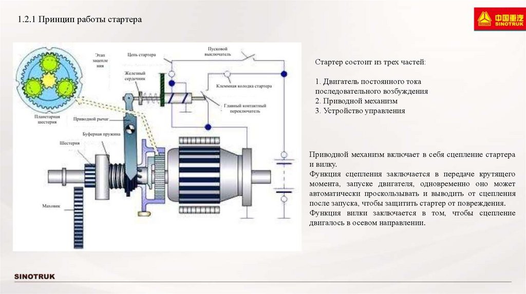 1.2.1 Принцип работы стартераСтартер состоит из трех частей: