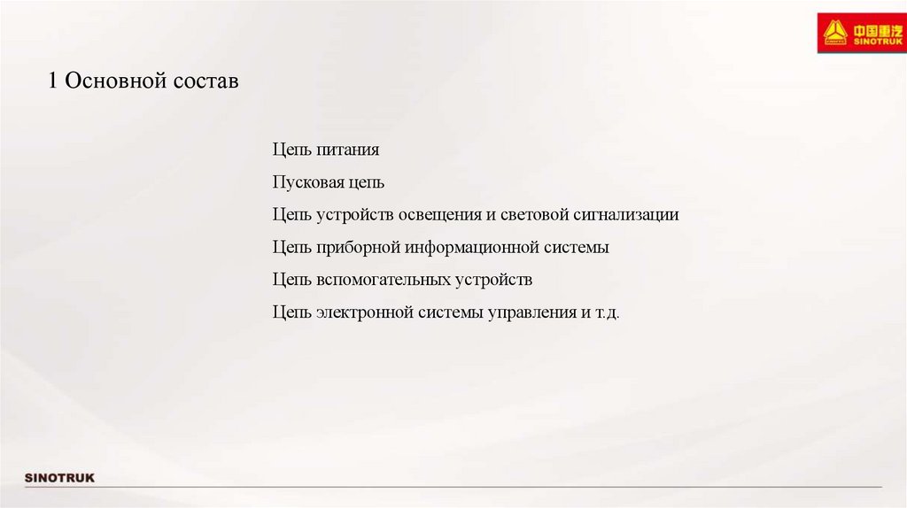 Знание о электрических цепях тяжелыхгрузовиков Синотрак