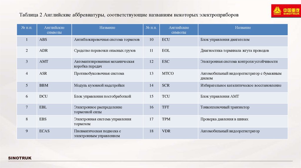 Таблица 2 Английские аббревиатуры, соответствующие названиям некоторых электроприборов№ п.п.