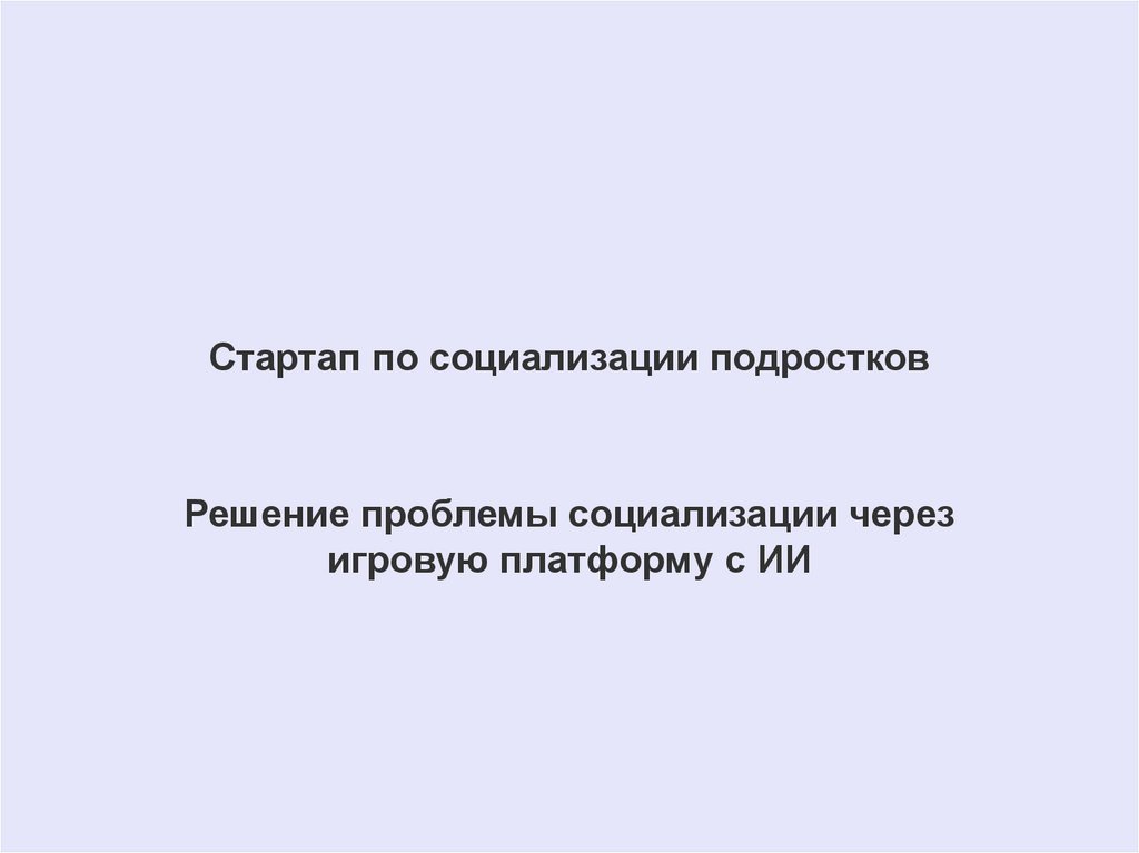 Стартап по социализации подростков. Решение проблемы социализации через игровую платформу с ИИ