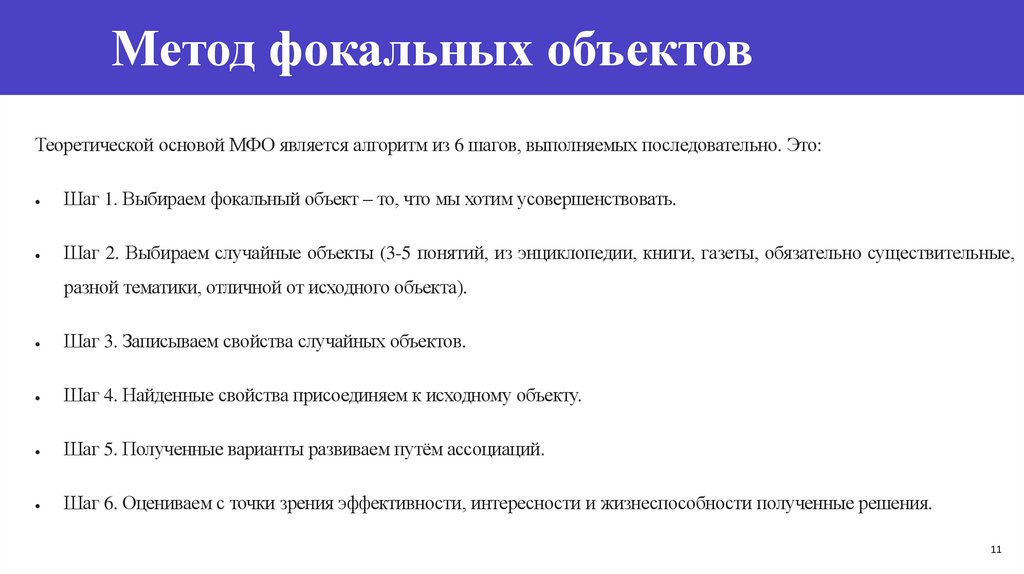 Метод фокальных объектовТеоретической основой МФО является алгоритм из 6 шагов, выполняемых последовательно. Это: