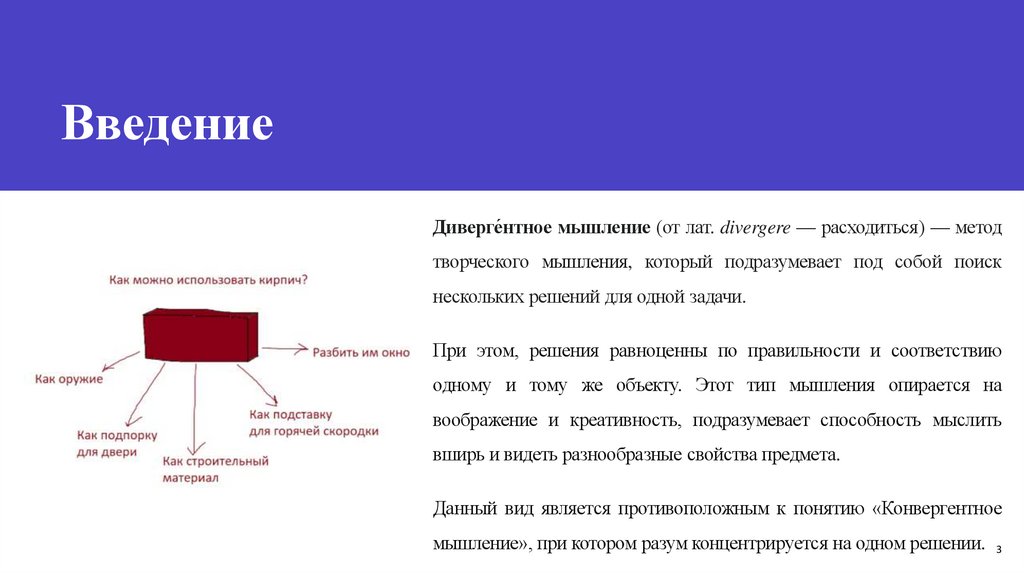 ВведениеДиверге́нтное мышление (от лат. divergere — расходиться) — метод