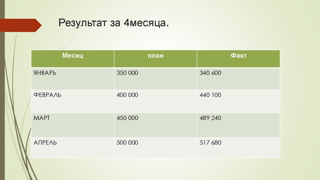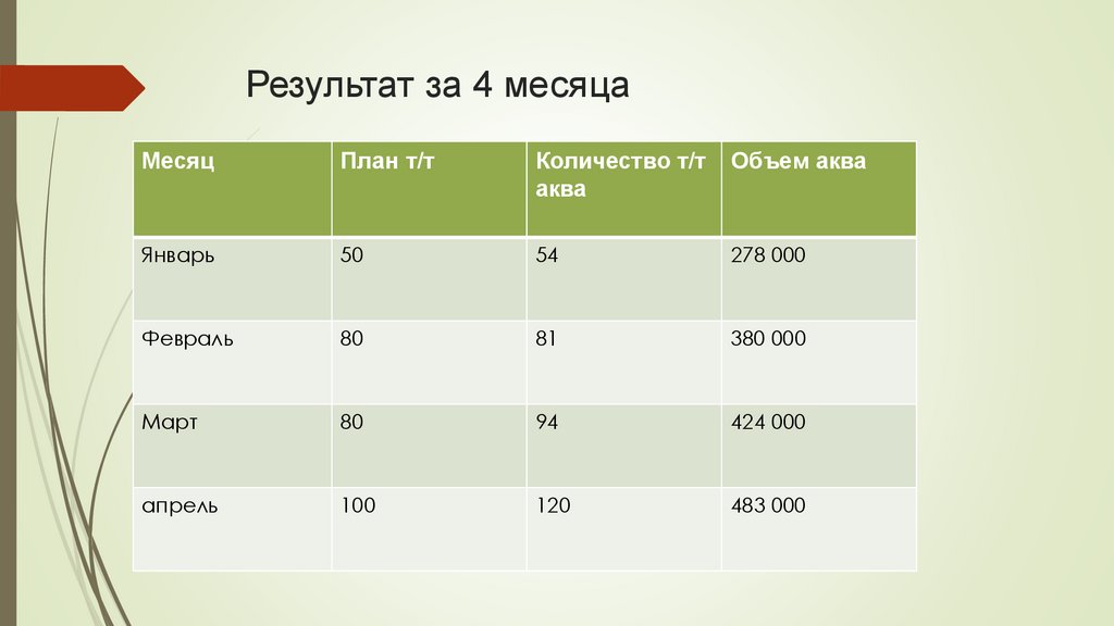 Результат за 4месяца.Месяц