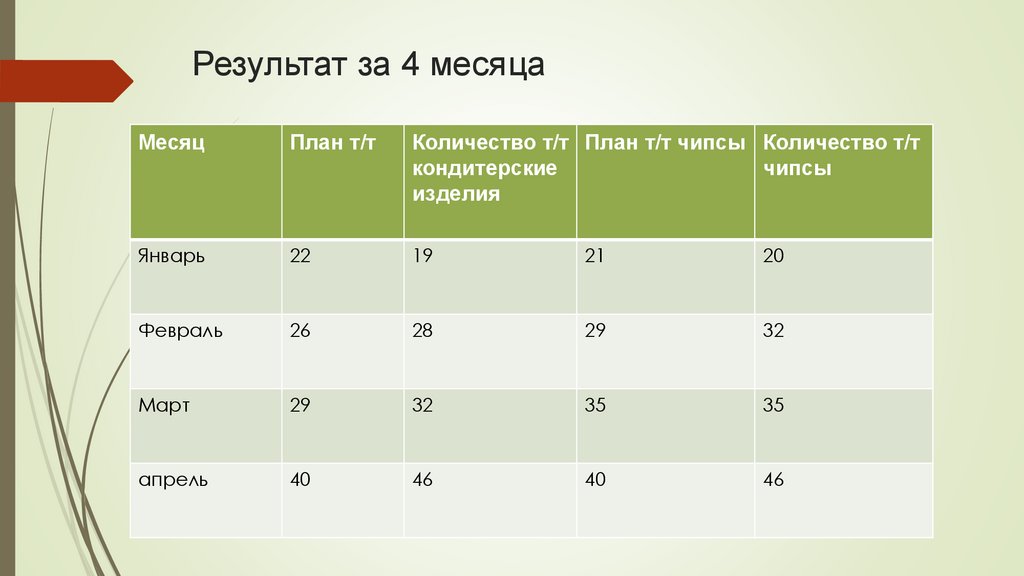 Результат за 4 месяцаМесяц