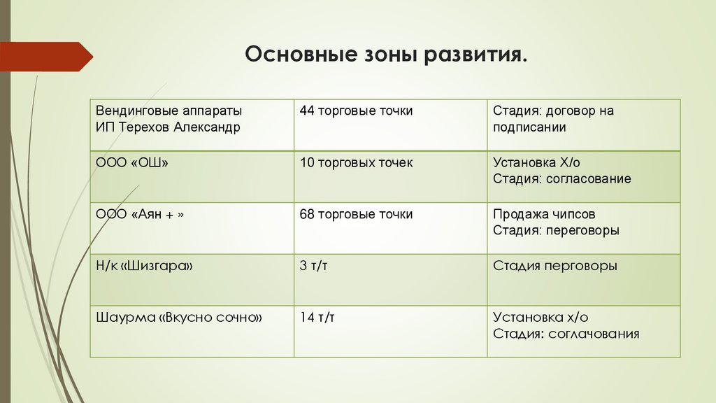 Основные зоны развития.Вендинговые аппараты