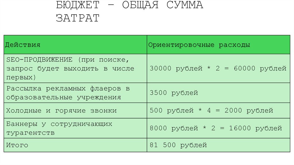 БЮДЖЕТ – ОБЩАЯ СУММАЗАТРАТ