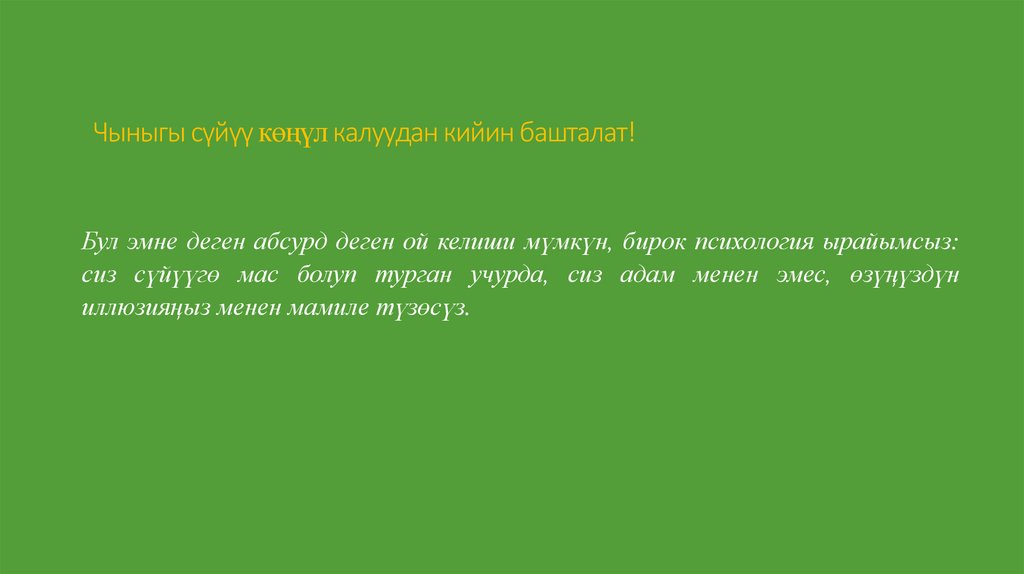 сиз сүйүүгө мас болуп турган учурда, сиз адам менен эмес, өзүңүздүн