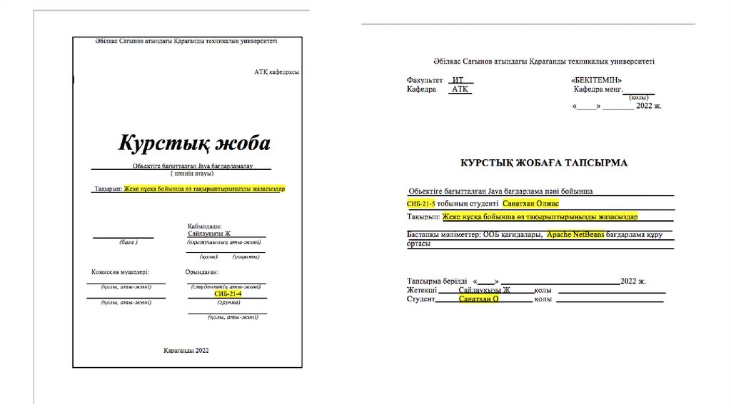 Курстық жоба бойынша түсіндірме жазбаның құрылымы
