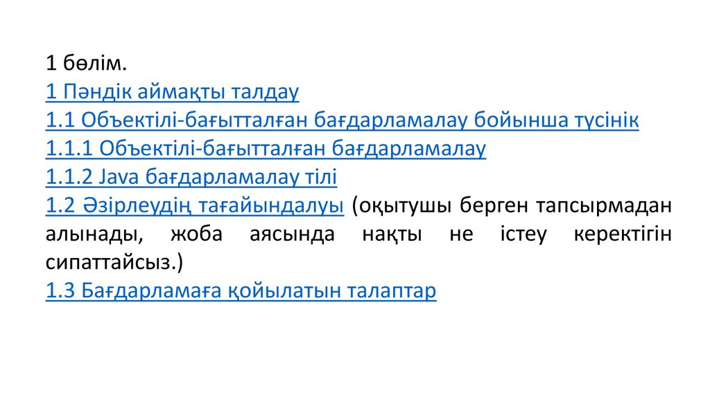 Курстық жоба бойынша түсіндірме жазбаның құрылымы.Кіріспе. Мұнда сіз пәндік аймақ бойынша сипаттама бересіз,