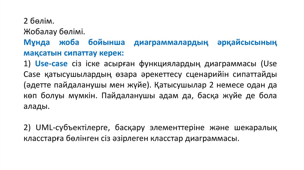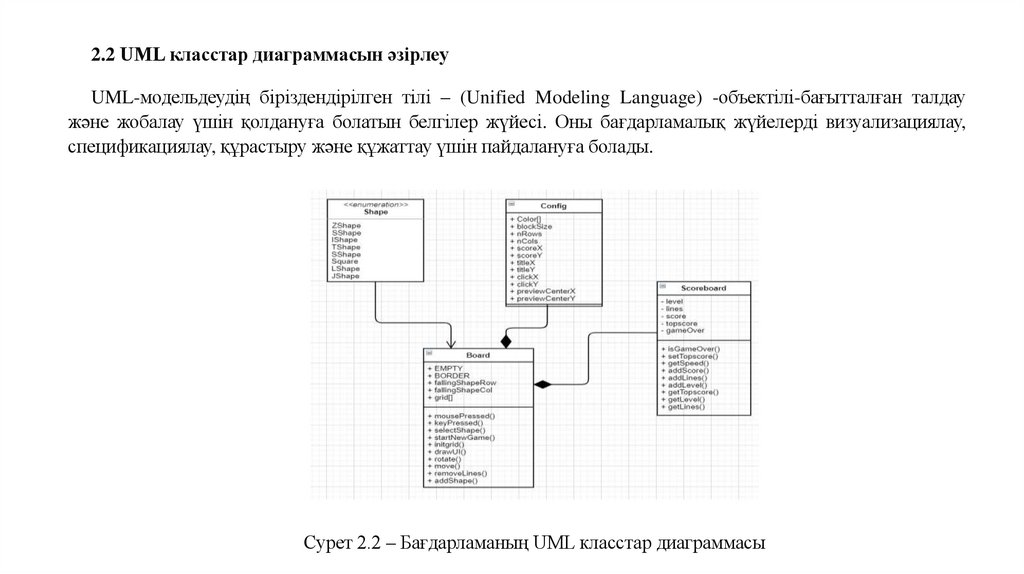 2.2 UML класстар диаграммасын әзірлеуUML-модельдеудің біріздендірілген тілі – (Unified Modeling Language) -объектілі-бағытталған талдау