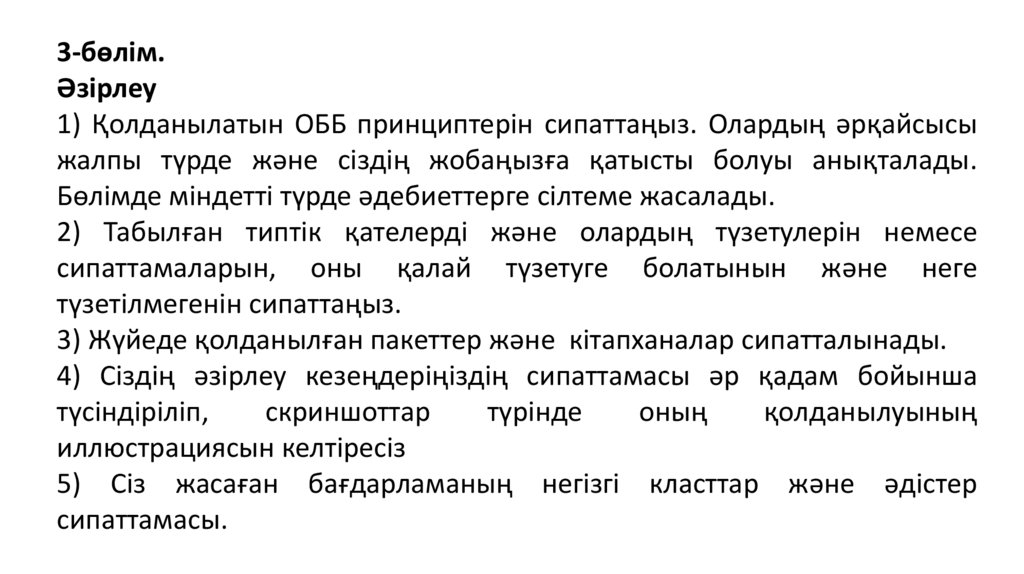 3 Әзірлеменің құрылымдық сипаттамасы3.1 Әзірлеу барысында қолданылған ОББ-дың принциптері