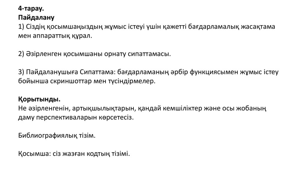 1) Сіздің қосымшаңыздың жұмыс істеуі үшін қажетті бағдарламалық жасақтама