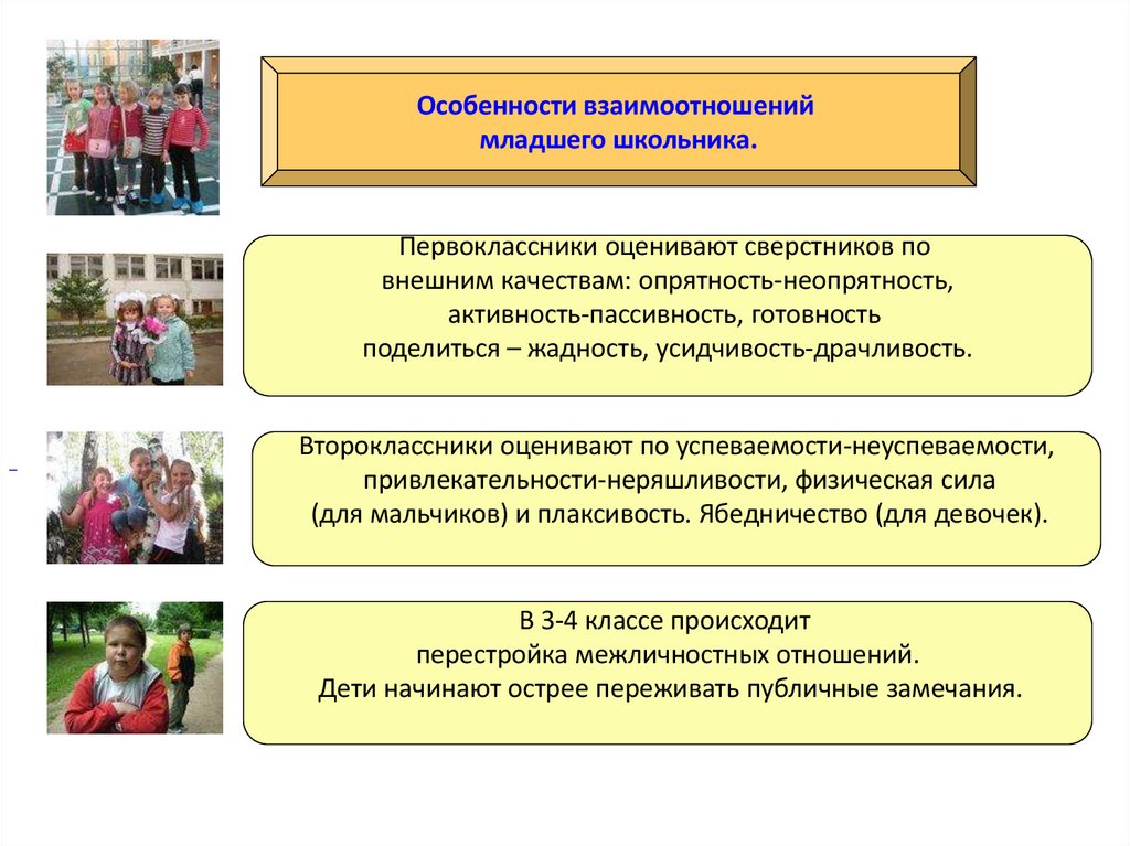 Особенности взаимоотношениймладшего школьника.