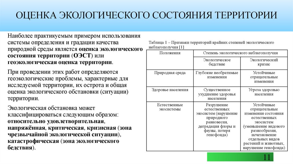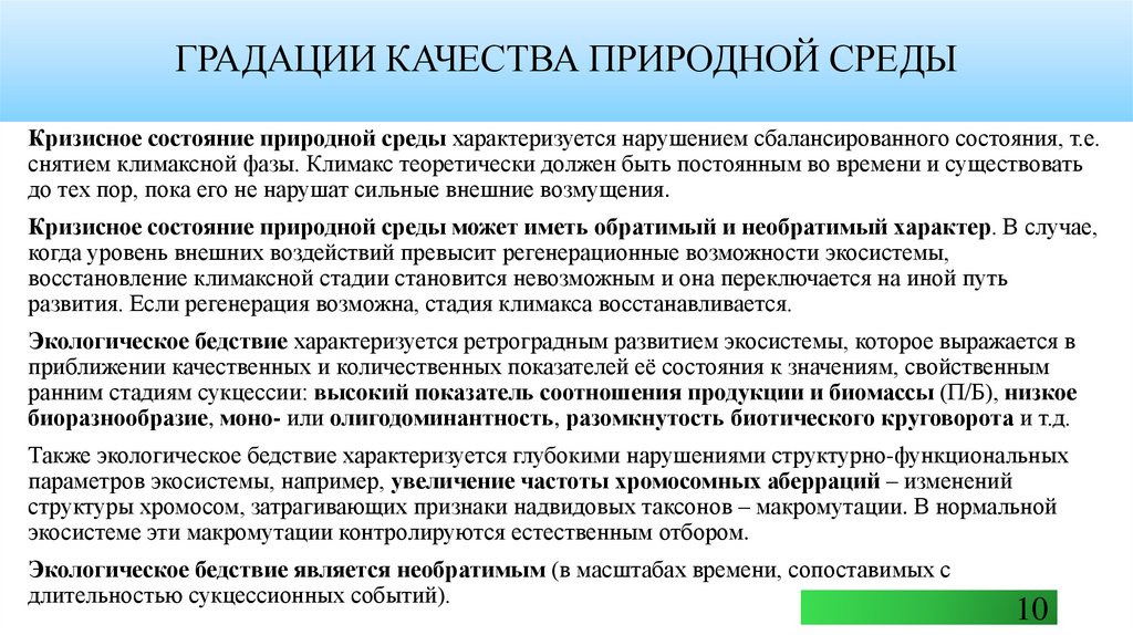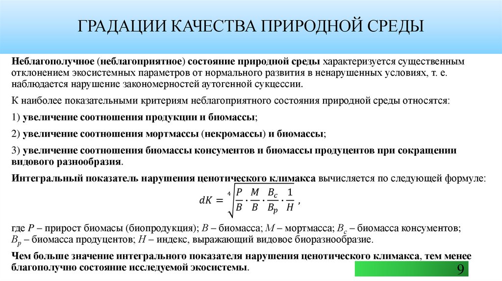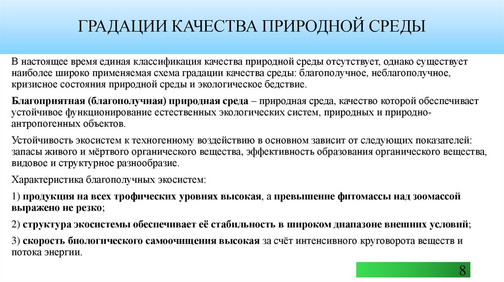 «КАЧЕСТВО ПРИРОДНОЙ СРЕДЫИ ЕГО ГРАДАЦИИ»