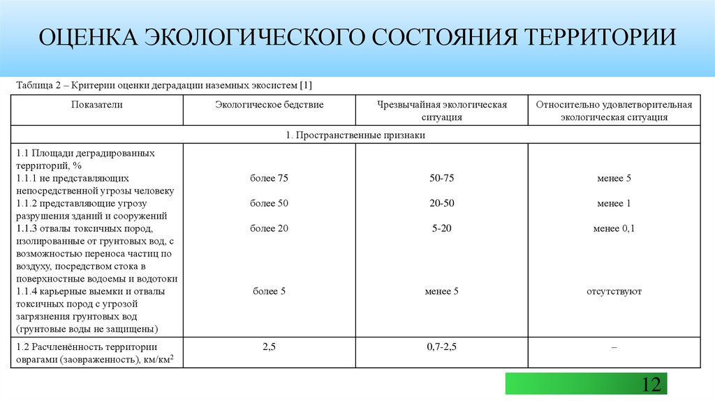 нарушенности, например, полная экологическая ёмкость территории, коэффициент экологической