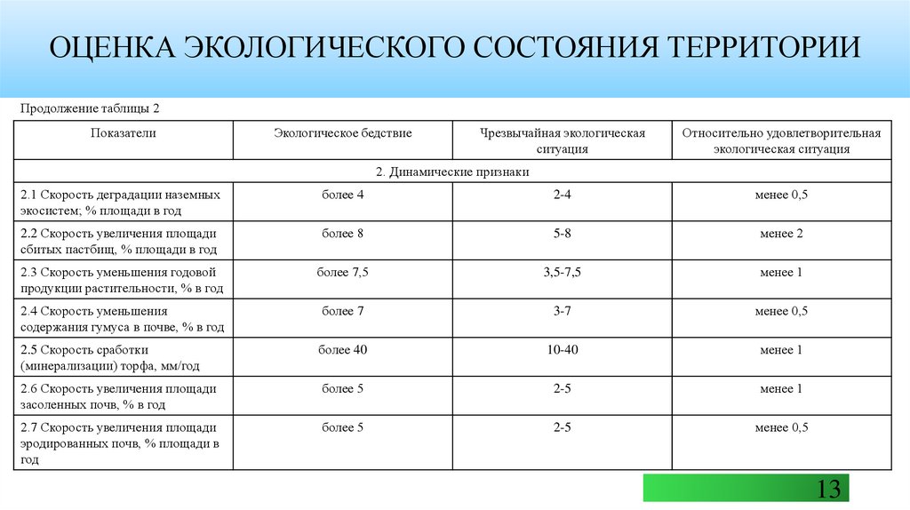 КРИТЕРИИ КАЧЕСТВА ПРИРОДНОЙ СРЕДЫПримечания: