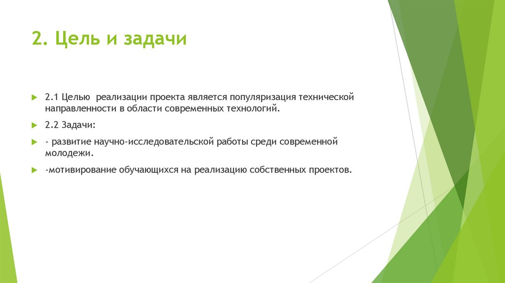 2. Цель и задачи2.1 Целью реализации проекта является популяризация технической