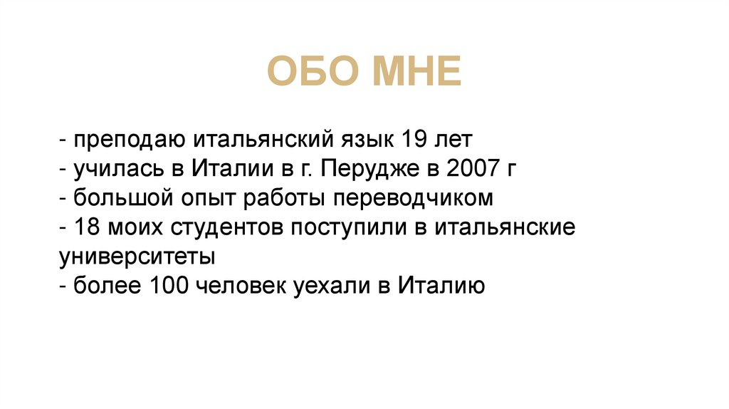 ОБО МНЕ- преподаю итальянский язык 19 лет