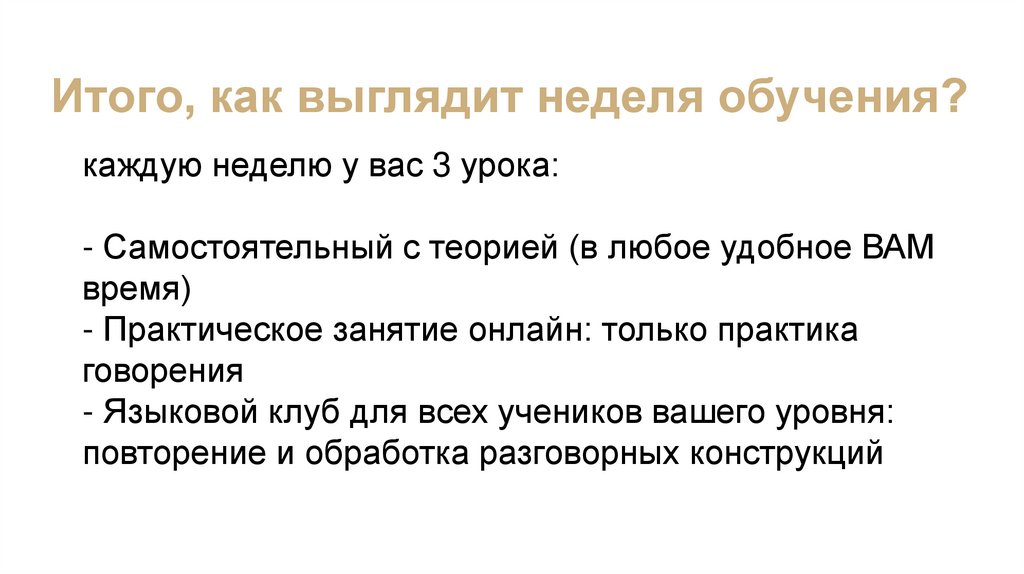 Итого, как выглядит неделя обучения?каждую неделю у вас 3 урока: