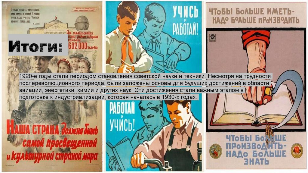 1920-е годы стали периодом становления советской науки и техники. Несмотряна трудности послереволюционного периода, были заложены основы для