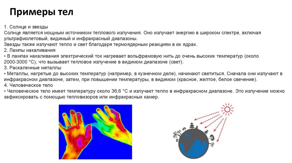 • Человеческое тело имеет температуру около 36,6 °С и излучает тепло в инфракрасном диапазоне. Это излучение можно