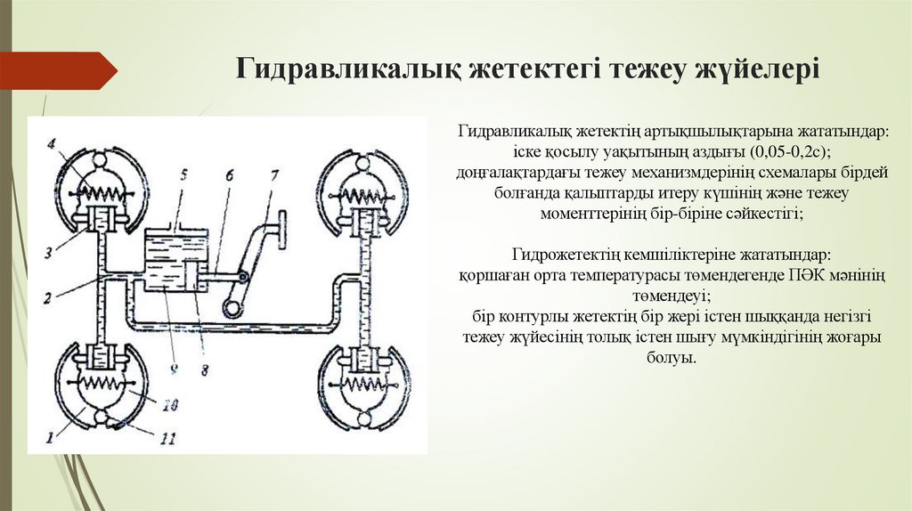 Гидравликалық жетектегі тежеу жүйелеріГидравликалық жетектің артықшылықтарына жататындар: