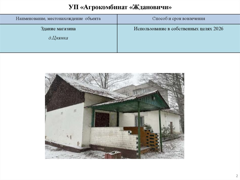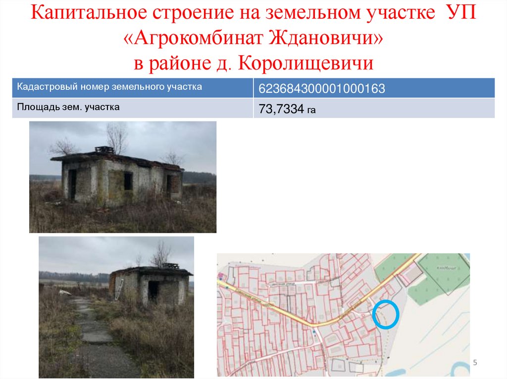 Капитальное строение на земельном участке УП«Агрокомбинат Ждановичи»